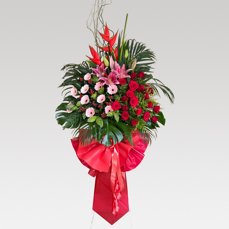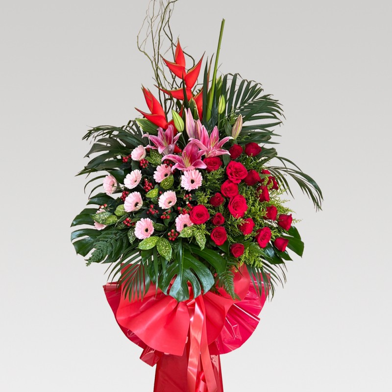 Flowers: Gerbera, Roses, Lily, Crab Crawl, Hypericum, Paku Leaf, Peacock, Monstera, Palm Leaf, Florida Beauty, Cordyline, Salix